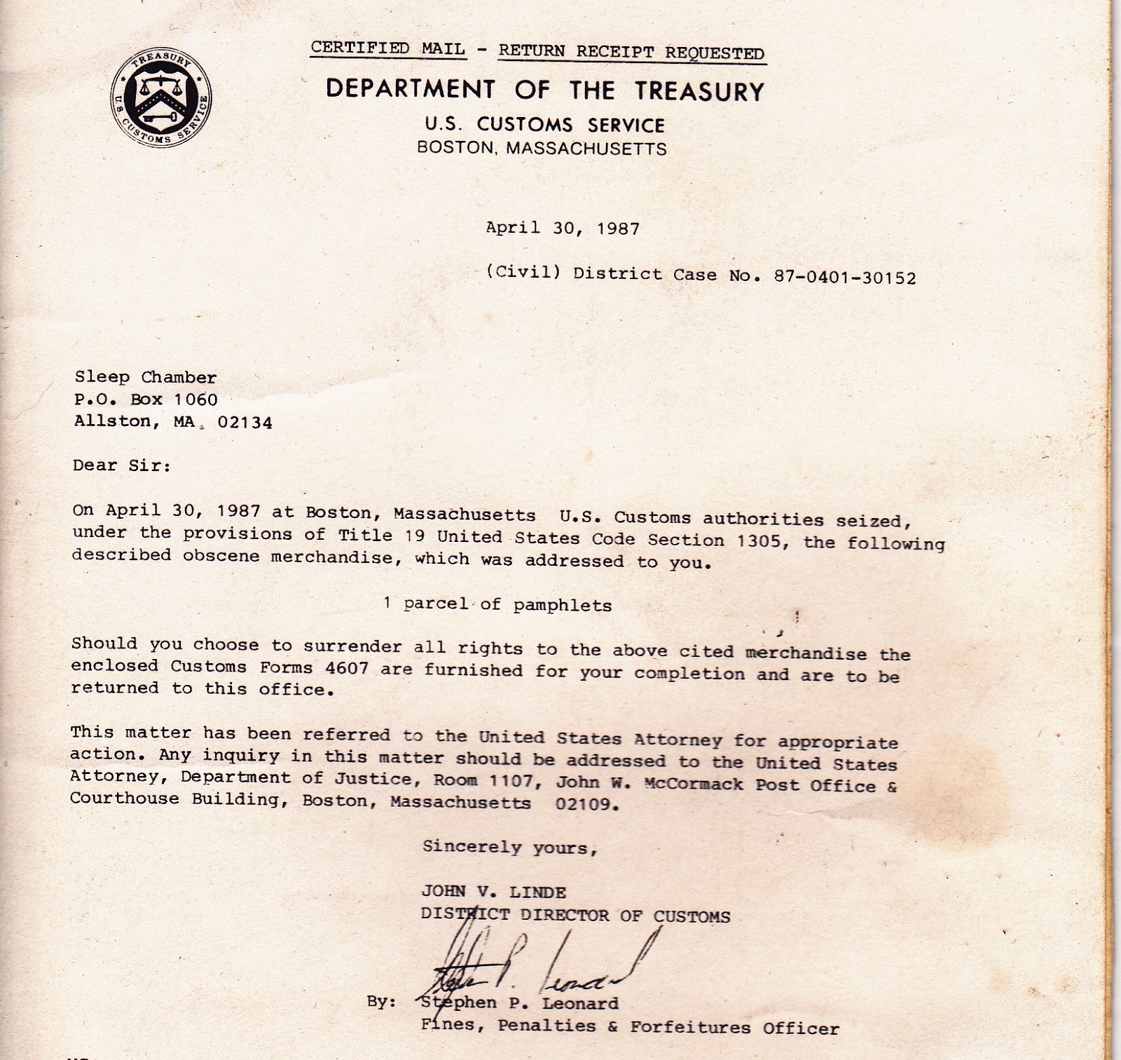 In the late 80's SLEEP CHAMBER waz slipping into issues ov 'Being Banned' from some venues for stunts we were pulling in Clubs. Not much past being trouble makers. Which seem to turn into violence most ov the time. There waz also occasional CUSTOMS seized packages ov LP's. (Especially SPELLBONDAGE & SEXMAGICK RITUAL).